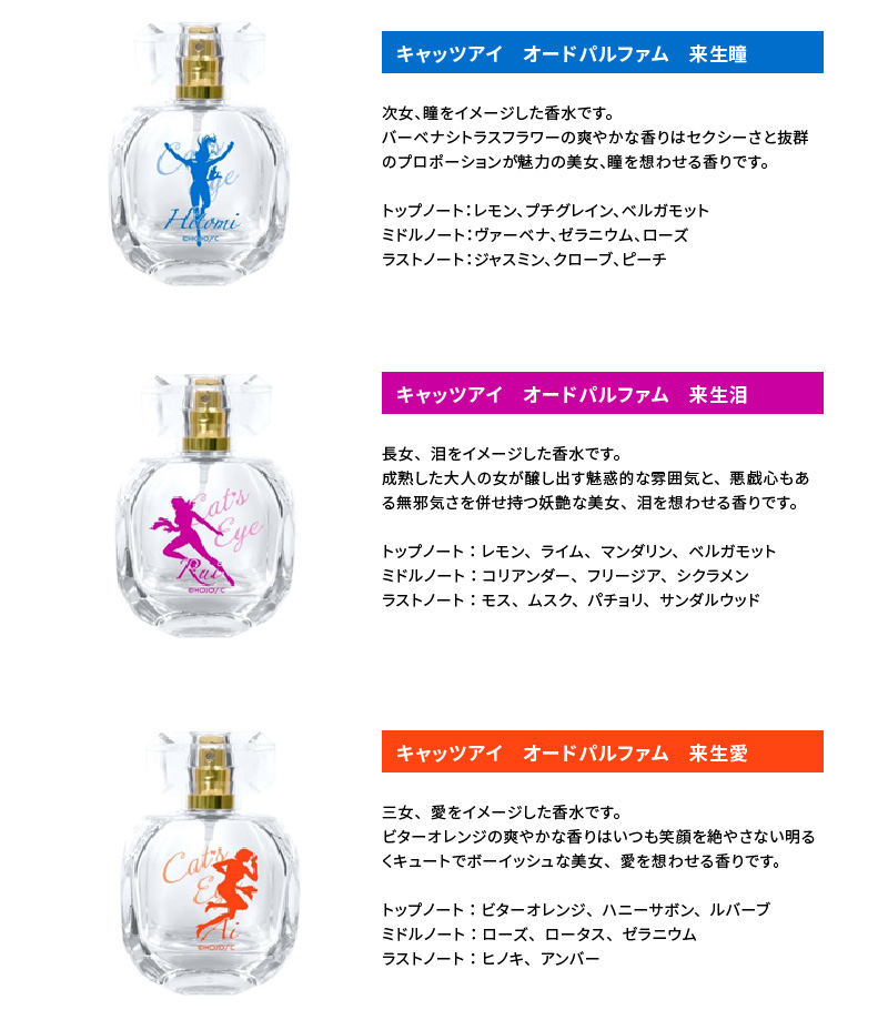 キャッツアイ 40th Anniversary オードパルファム 3種セット(来生瞳、来生泪、来生愛)