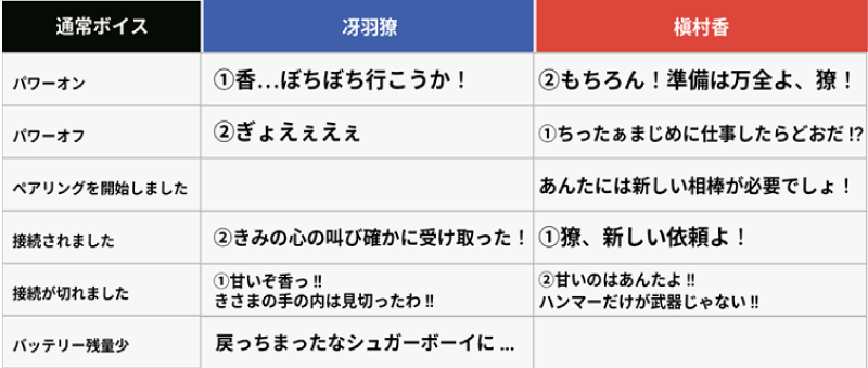 コラボレーションモデルには、ここでしか聞くことができない、冴羽獠(CV.神谷明さん)と槇村香(CV.伊倉一恵さん)の録り下ろし「操作音」「シークレットボイス」を搭載。さらにアプリと連携すると聞くことができる「時報」もございます。「時報」は獠と香が依頼をこなす1日を体験することができるようなセリフになっています。