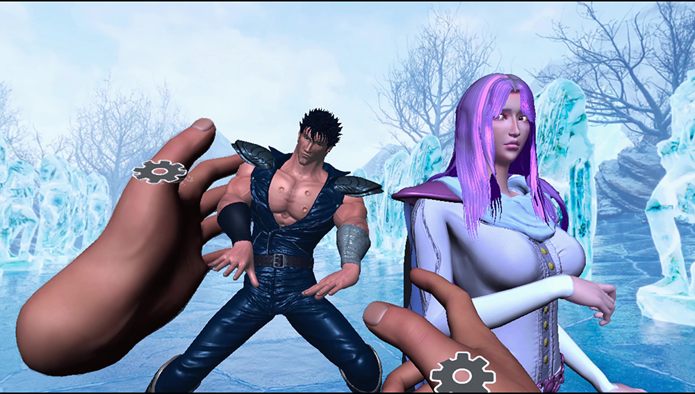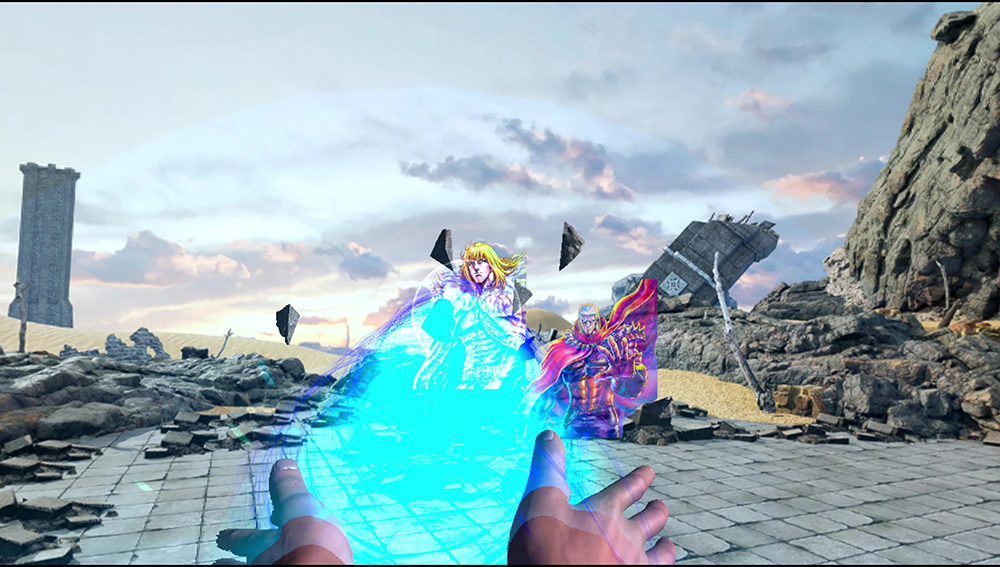 ストーリー全編の進行に合わせて用意されたVR空間の背景は計180種類。平均30ページごとに背景が切り替わります。更に魅力を引き上げるのが炎や霧、光などの視覚効果と効果音。物語に合わせて表情を刻々と変える水没都市や闘技場など、『北斗の拳』の広大な世紀末の世界が目の前に広がり、没入感・高揚感を高めながら物語に引き込まれる体験を実現しました。