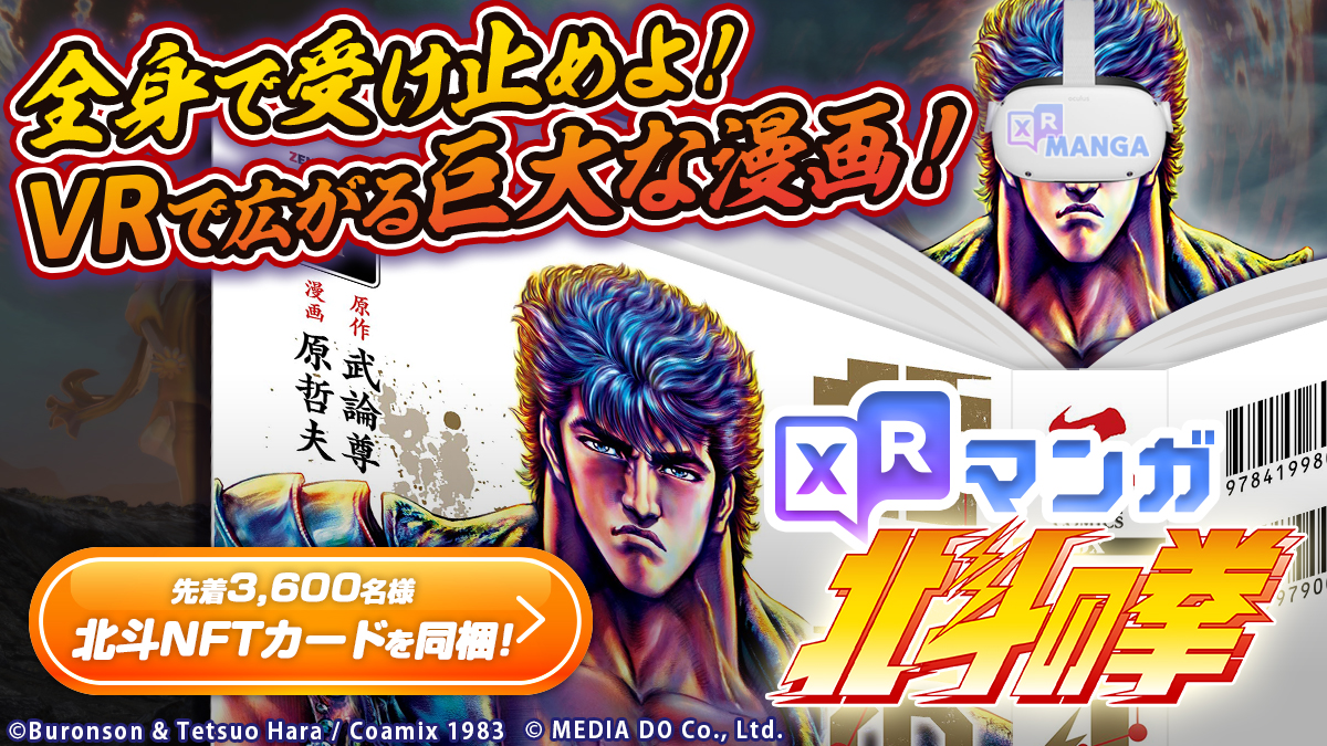 「XRマンガ 北斗の拳」は、コミックス『北斗の拳 究極版』の高画質データをそのままVR空間で再現しており、迫力ある原作の世界観に入り込み、隅々まで味わうのに最適な作品です。「XRマンガ」シリーズは引き続き、デジタルフィギュアを飾って眺めるコレクションルーム、ソーシャル機能、新規タイトルなど、今後拡大が見込まれるメタバース市場で新しい体験の提供に挑戦してまいります。