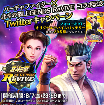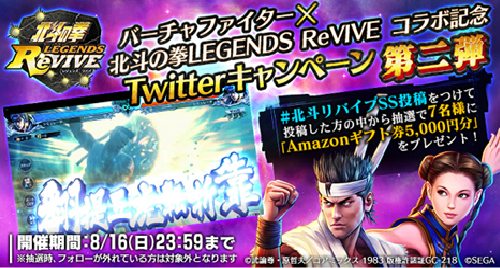 ◆『バーチャファイター』×『北斗の拳 LEGENDS ReVIVE』コラボ開催記念Twitterキャンペーン開催!