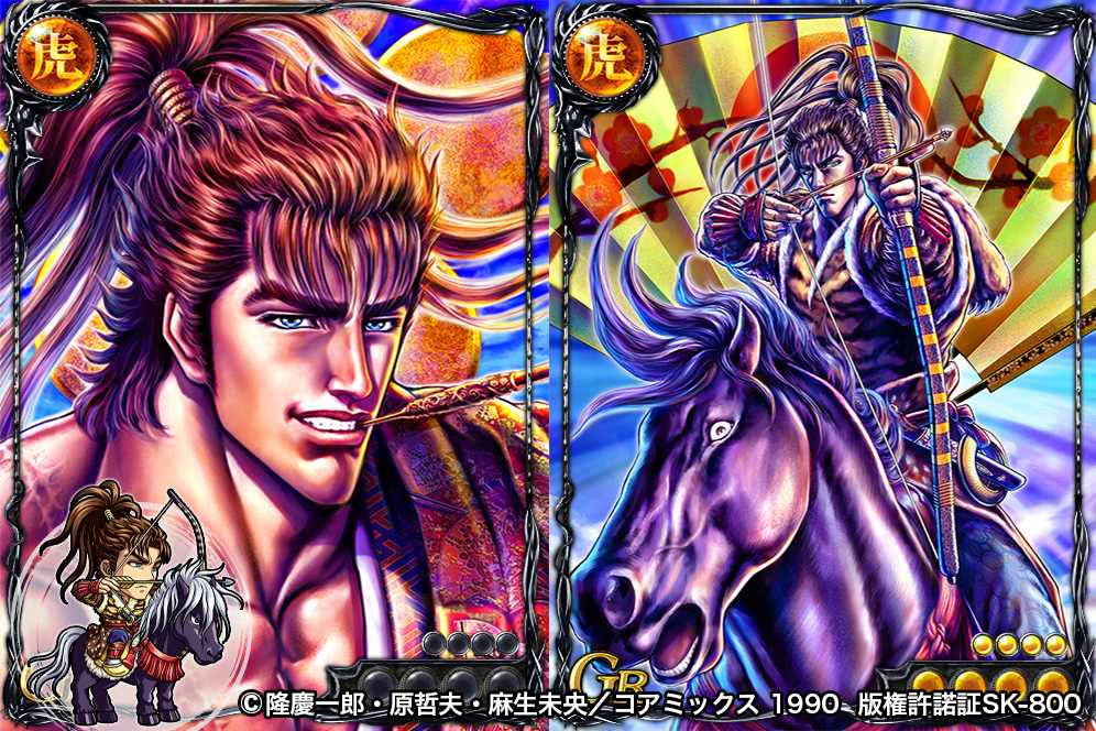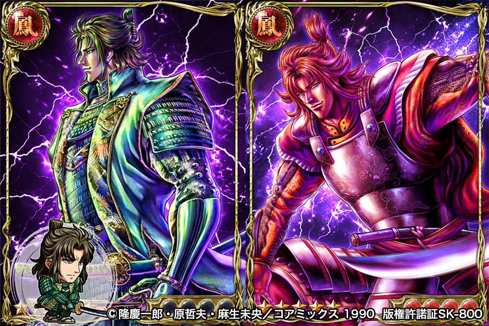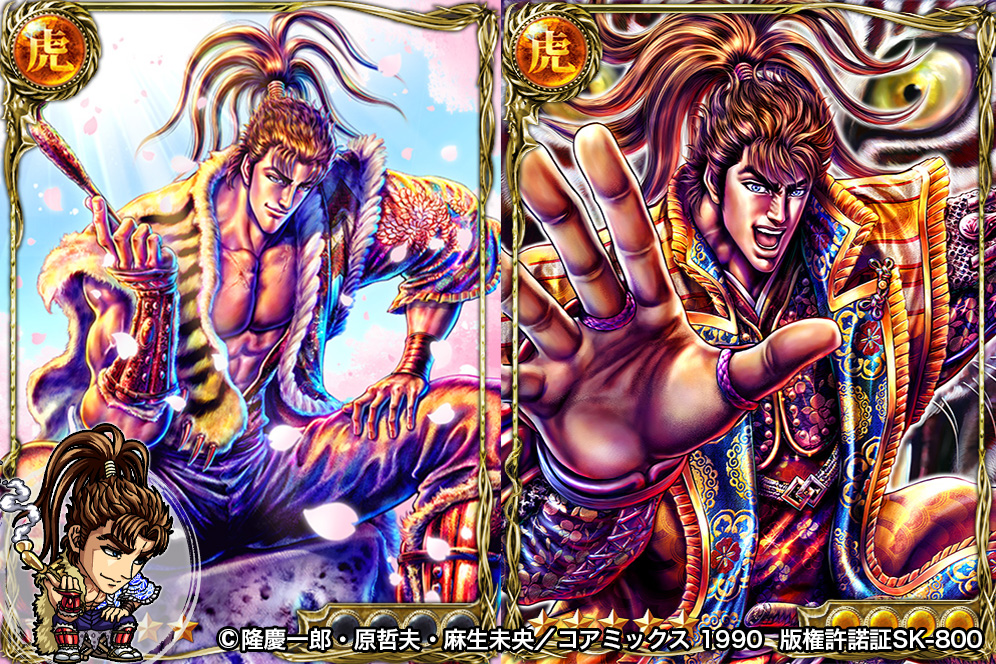 『花の慶次』で人気のキャラクターが「 KR[究極 乱]前田慶次」「KR[究極]直江兼続」「KR奥村助右衛門」として登場するコラボレーション限定ガチャを実施いたします。
