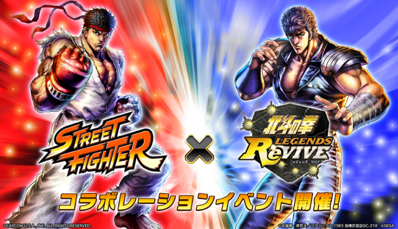 200万ダウンロードを突破した、スマートフォン向けゲームアプリ『北斗の拳 LEGENDS ReVIVE (以下、「北斗リバイブ」)』では、『ストリートファイター』とのコラボレーションイベントを4月30日(金)~5月21日(金)に開催します。
