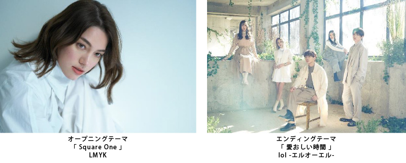 オープニングテーマには囁くような美しい歌声で、聴いた人をたちまち虜にするシンガーソングライター・LMYK「Square One」。優しいメロディーと作品に寄り添っている温かみのある歌詞が印象的な心地の良い楽曲となっております。 エンディングテーマには、日々進化を続ける男女混成5人組ダンス&ヴォーカルグループ・lol-エルオーエル- 「愛おしい時間」。メンバー全員での作詞に初挑戦し、タイトル通り愛おしい音楽と言葉が紡がれ、エンディングテーマに相応しい楽曲です。緻密に作られた素敵な音楽たちによって、本作の世界観を彩ります。