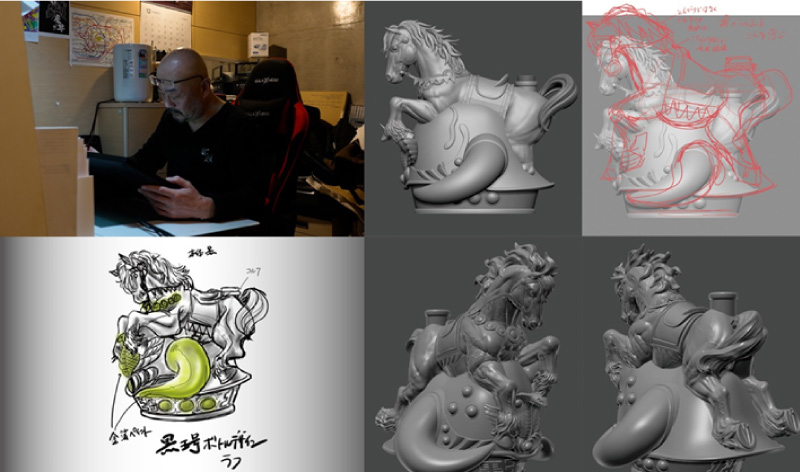ボトルの原型は日本のみならず、世界で活躍するスペシャルメイクアップアーティスト Amazing JIRO氏に依頼。原哲夫の監修による細部までのこだわり、その迫力、美しさ、猛々しさを追求し、デザイン画から造形として、命が吹き込まれた瞬間でもありました。