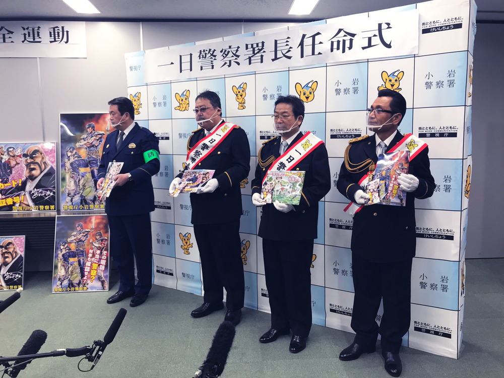 10月20日、東京・江戸川区で増加する特殊詐欺防止を目的に、警視庁小岩警察署で原哲夫が一日署長を務めました。