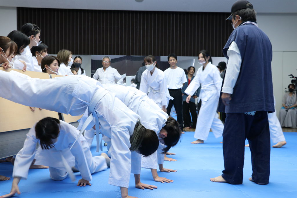 午後は、熊本城の観光施設「桜の馬場 城彩苑」へ移動し、舞台の基礎稽古を実施。舞台「前田慶次 かぶき旅」の演出家で殺陣師の佐々木修平さんを始めとする、豪華講師陣によるつきっきりの指導が行われました。